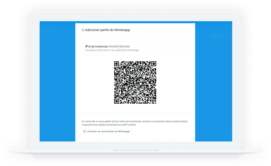 Basta escanear QRCode na tela da plataforma e seu WhatsApp será conectado de forma instantânea.